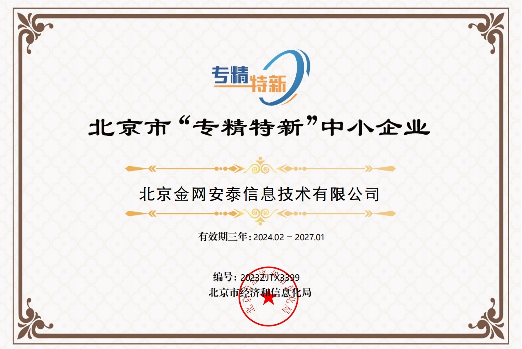 北京金网安泰信息技术有限公司凭借其在大宗商品行业20余年的深厚技术积淀、广泛行业影响力以及创新研发能力,于2024年2月荣获北京市 “专精特新”企业认定。