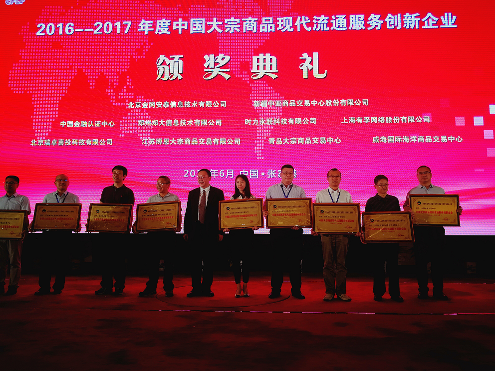 为贯彻落实党的十八大精神和新发展理念,积极发挥流通业在国民经济中的先导性作用,更好地服务于国家供给侧结构性改革,中国物流与采购联合会于2017年6月23日至24日在江苏省张家港市举办“2017中国大宗商品创新发展高峰论坛”暨“全国重点商贸流通企业与批发市场总裁联席会”。北京金网安泰信息技术有限公司作为“中国大宗商品现代流通服务创新企业”的获奖企业应邀出席了此次会议。
